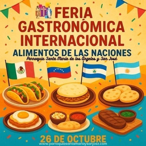 Después de la misa, compartiremos una feria gastronómica internacional con platos típicos de distintos países, expresión viva de la riqueza cultural de la familia misionera mundial.