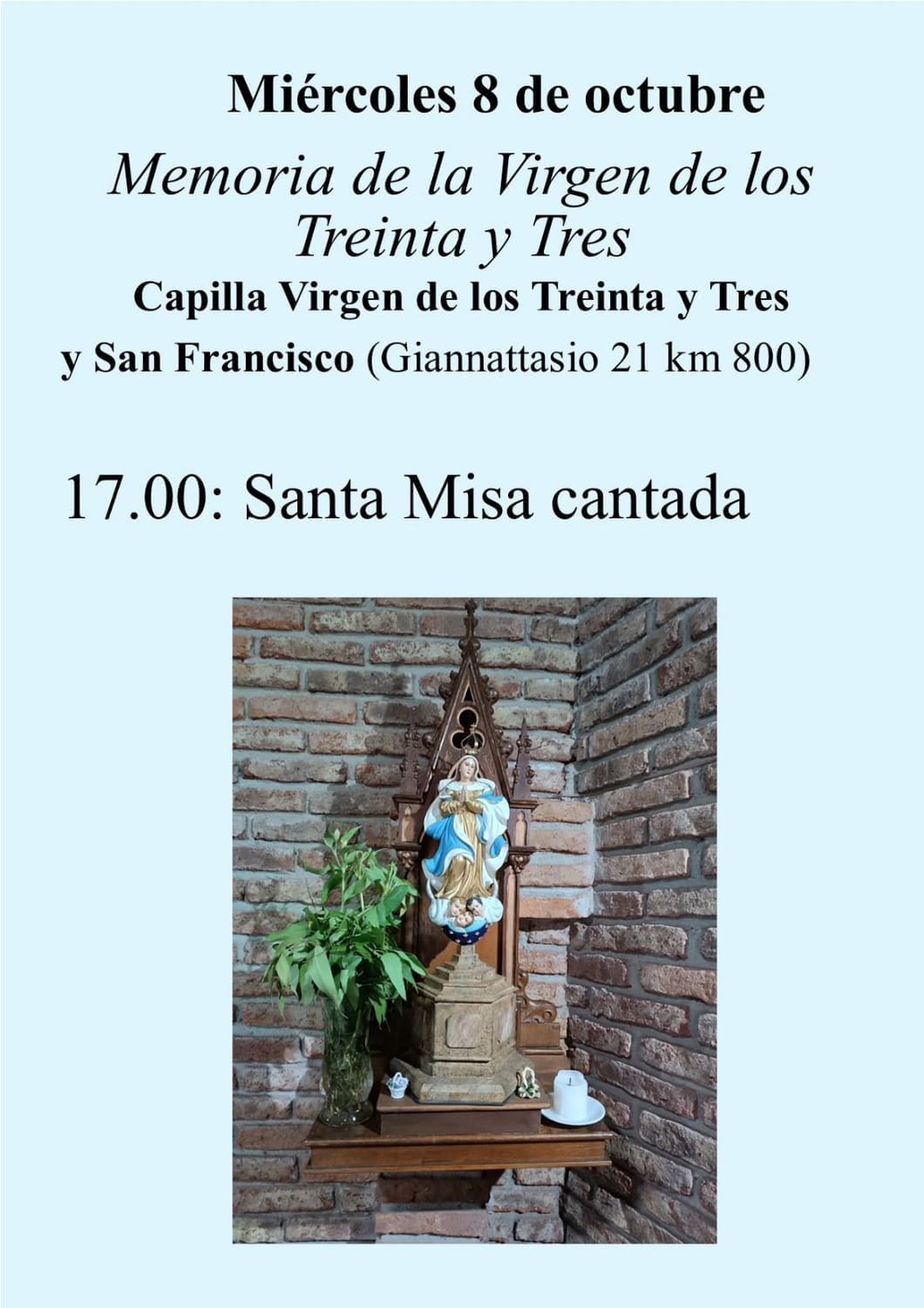 📍 Te esperamos para compartir juntos la celebración y encomendarnos a la Virgen de los Treinta y Tres, signo de unidad y esperanza para nuestra nación.