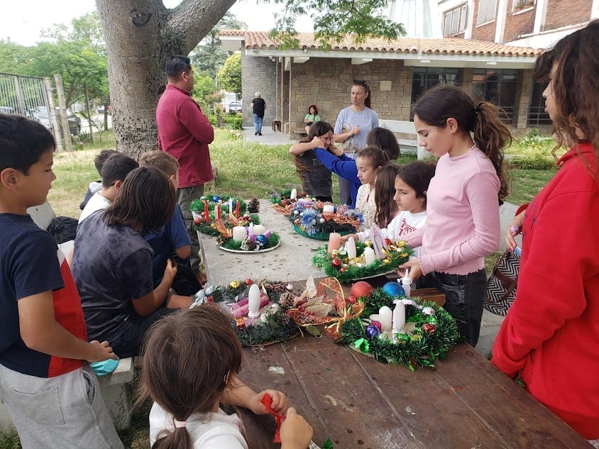 Los niños de Catequesis prepararon con entusiasmo sus Coronas de Adviento junto al Padre Luis y sus catequistas.