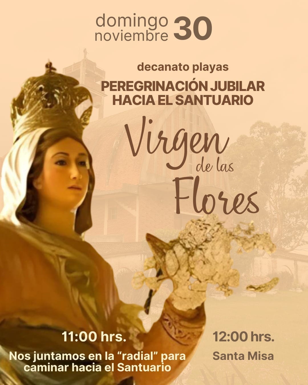 El decanato Playas invita a participar de la Peregrinación Jubilar al Santuario de la Virgen de las Flores este 30 de noviembre 🚶♂️🙏.